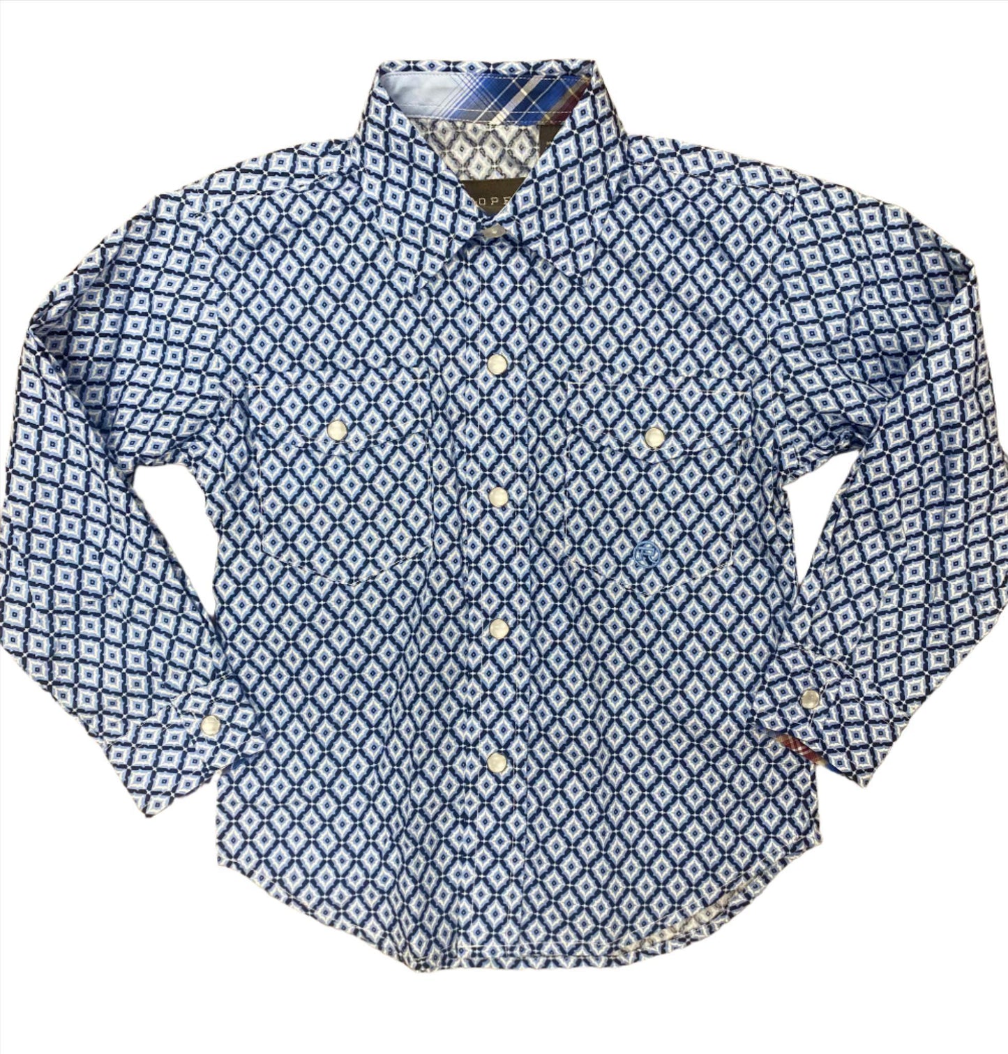 Roper Boy's Long Sleeve Amarillo Snap All Over Print Stretch