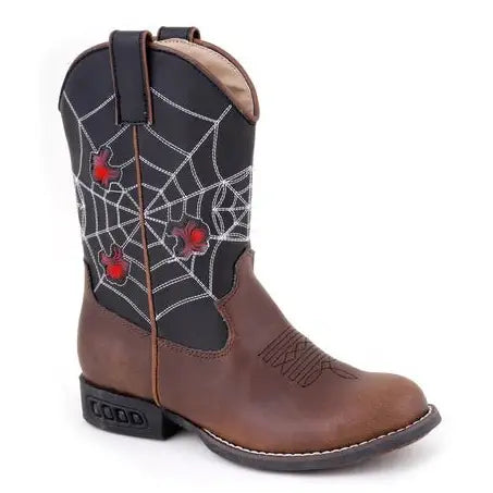 Roper® Children's Faux Leather Western Boots with Lights on the heels and in the spider's web design.