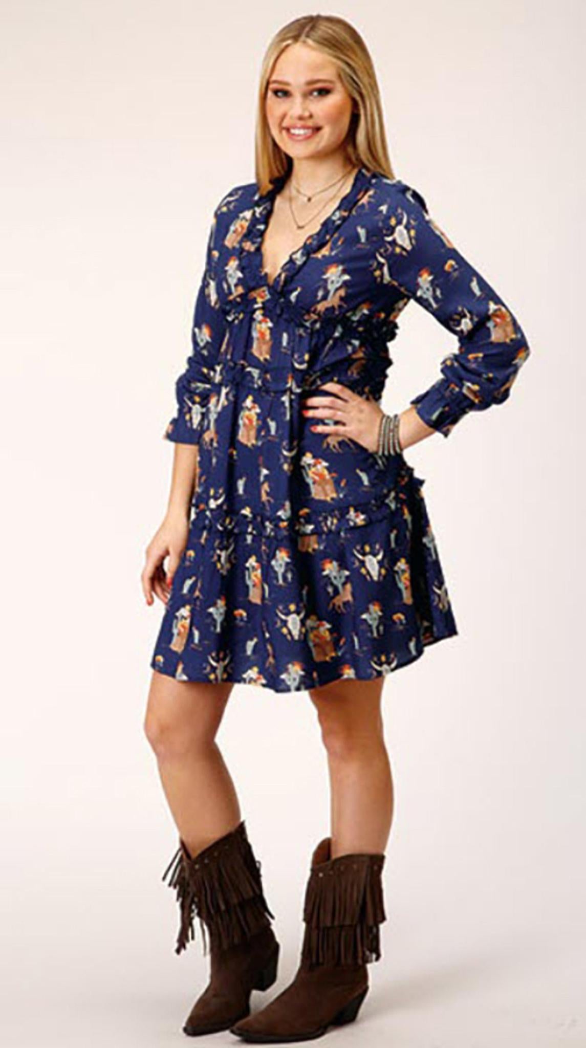 Roper Women's Dress Cowboy Toile Rayon Dress In Navy - CLEARANCE