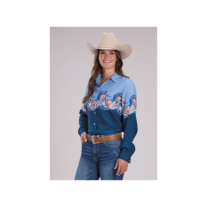 Roper Women's Long Sleeve Button Up Barrel Race Border Shirt