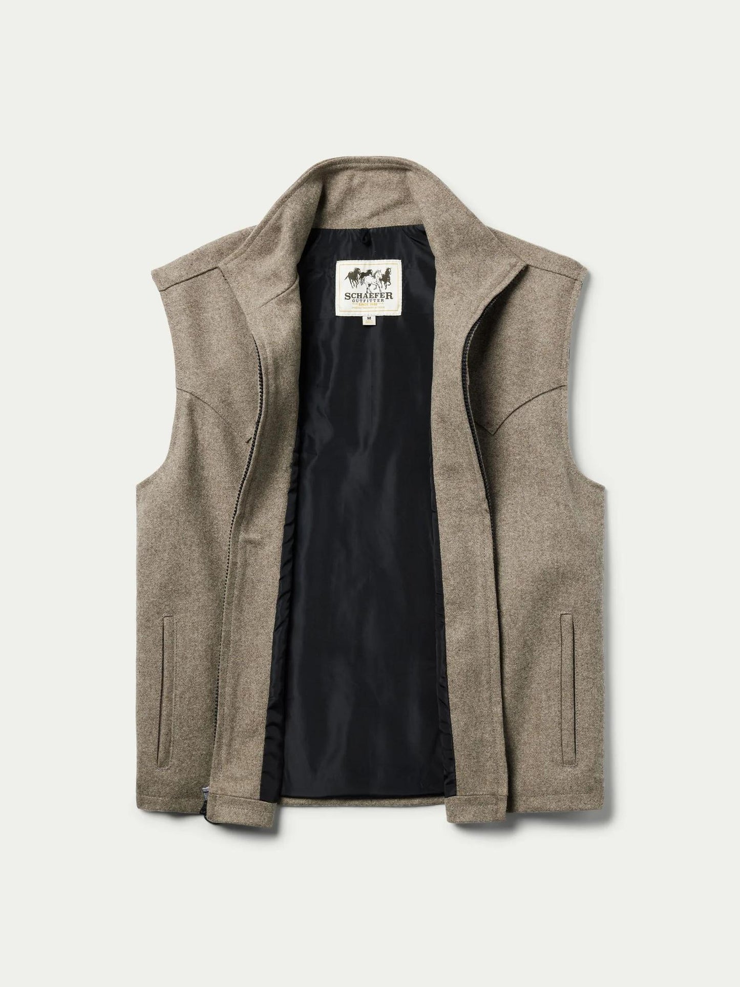 A comfortable and dependable wool vest that is dapper enough for an evening out on the town and functional enough for mornings in the field.