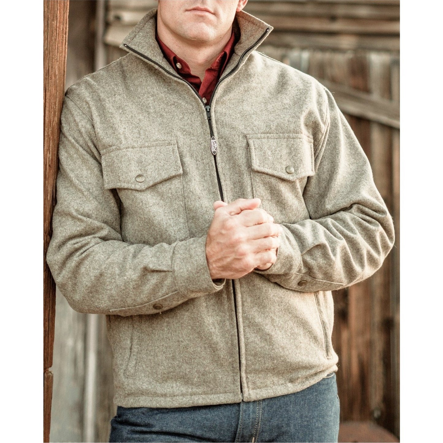 The Austin Jacket is built from our new 15 oz. Legacy Lite Melton Wool and lined with premium taffeta. It has the feel and comfort of a heavy shirt, but the bearing of a jacket. Trimmed with easy rolling coil zippers down the storm collar front and side entry pockets. Adjustable cuffs and oversized chest pockets trimmed with solid brass logo snaps and a single needle western yoke back round out a western wool jacket that's soon to become your favourite.
