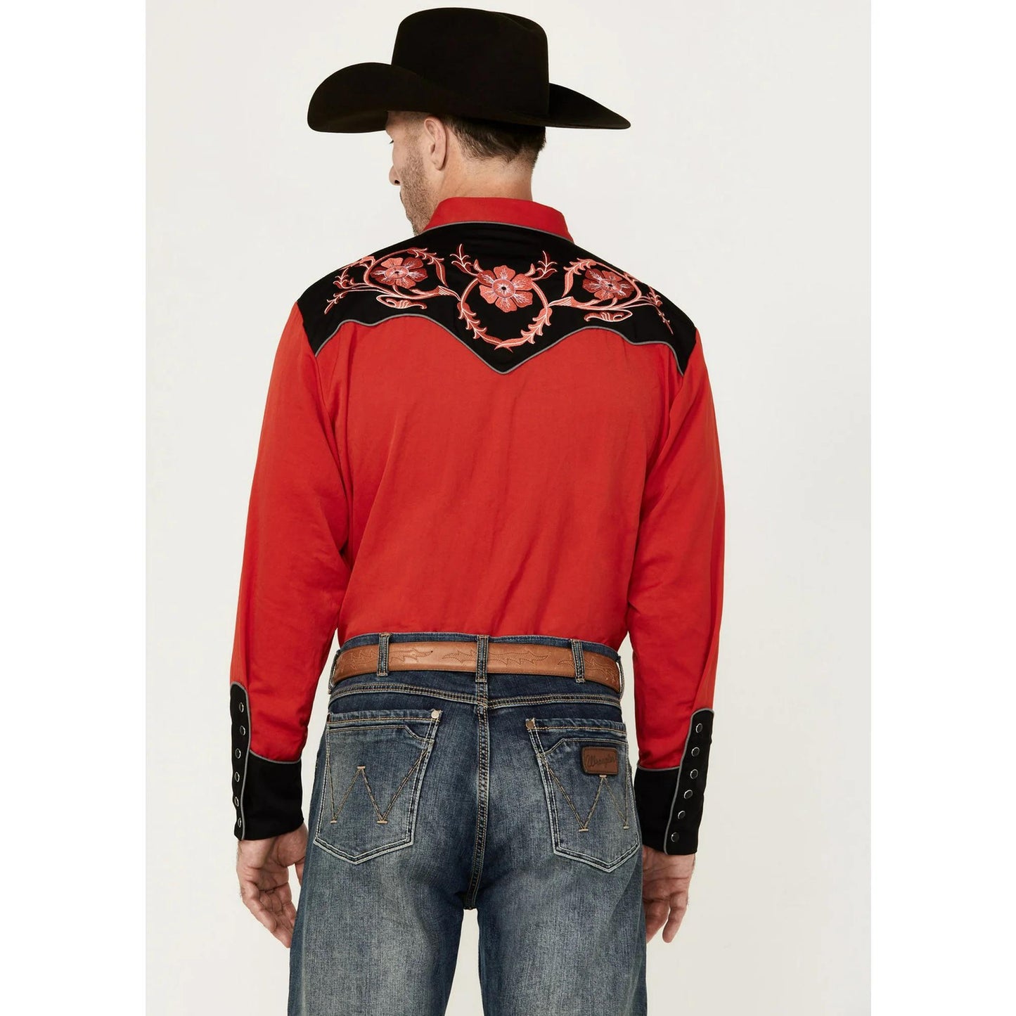 Scully Men's Floral Embroidered Long Sleeve Snap Western Shirt In Red