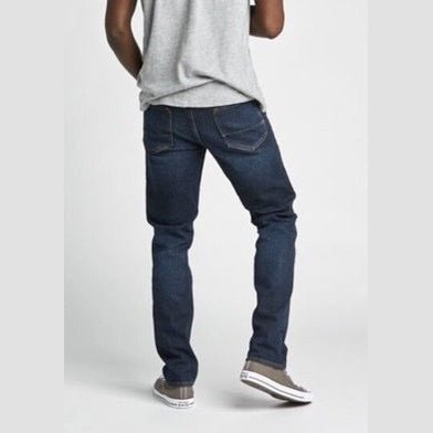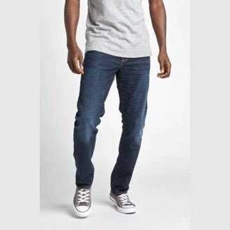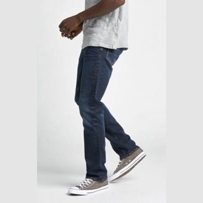 - Sits just below the waist with a classic hip and thigh, and straight leg