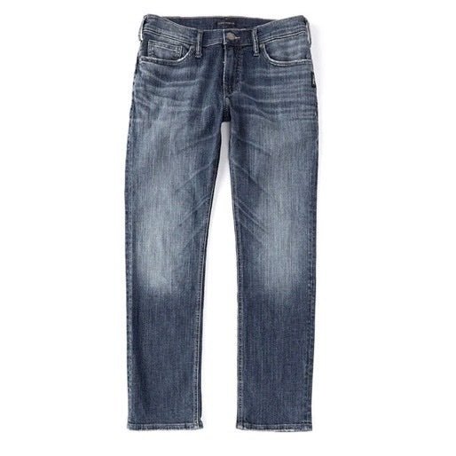 Silver's Allan is the jean that looks good on everybody. Allan sits just below the waist and features a classic fit through the hip and thigh. This pair's designed in performance stretch denim with ultimate flexibility and mobility for guys who are always on the go. Finished with a straight leg plus a dark indigo rinse with heavy hand sanding and whisker patterns.