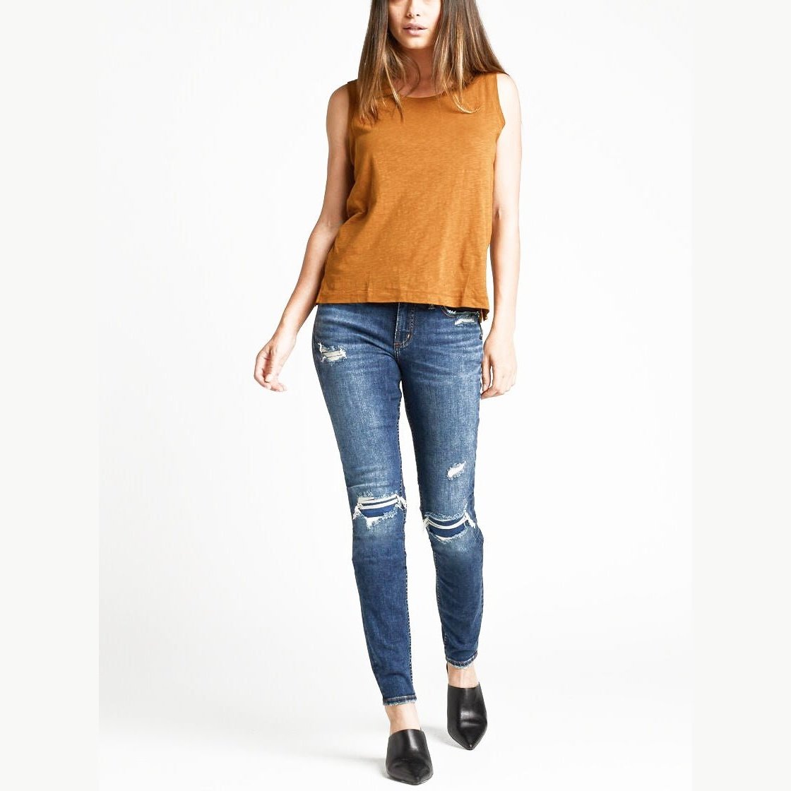 Silver Jeans Women’s Elyse Mid Rise Curvy Skinny Fit Distressed - Clearance