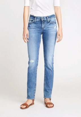 Silver Jeans Women's Elyse Mid Rise Curvy Fit Straight Leg Distressed - Clearance