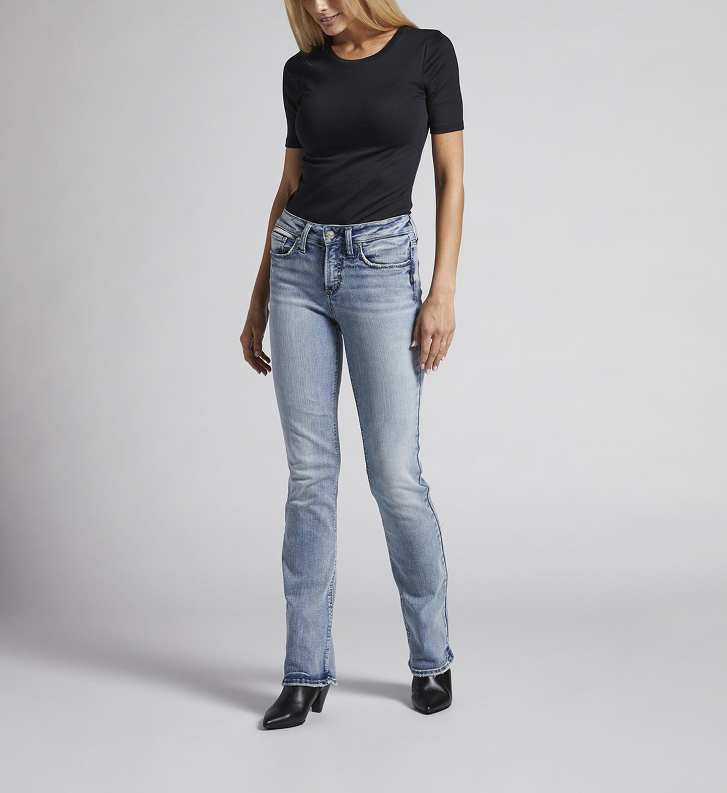 Silver Jeans Women's Suki Mid Rise Curvy Fit Boot Cut Distressed