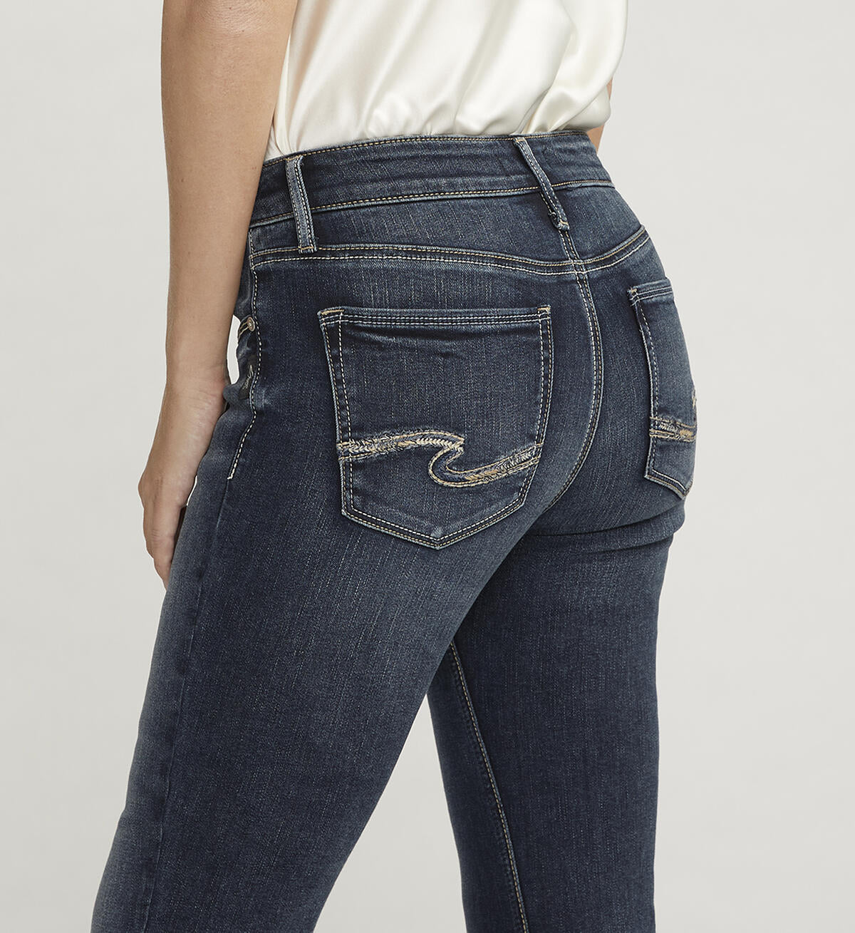 Suki is the best-selling Silver Jeans Co.™ curvy fit for good reason. Designed to enhance curves, this pair creates a flattering silhouette with ease in the hip and thigh to hug every angle. The classic mid rise is comfortable, and the contoured waistband ensures a zero-gap fit.