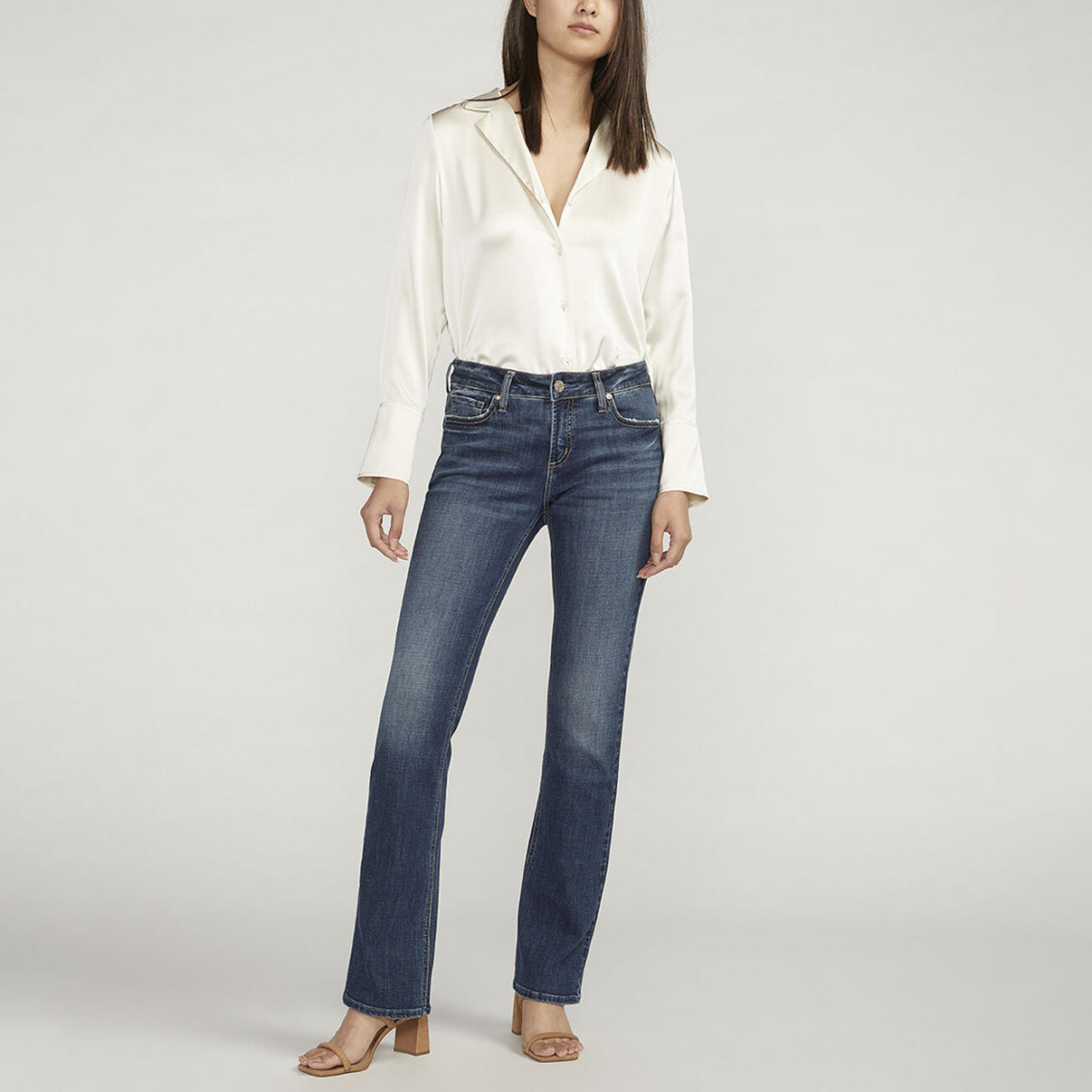 Introducing Elyse, your new favorite everyday denim choice. Crafted with Silver Jeans Co.™ comfort fit design, these women's jeans boast a classic mid-rise and eased waistband to eliminate muffin top and ensure comfort around the midsection. They also offer extra room in the hip and thigh to perfectly complement your curves.