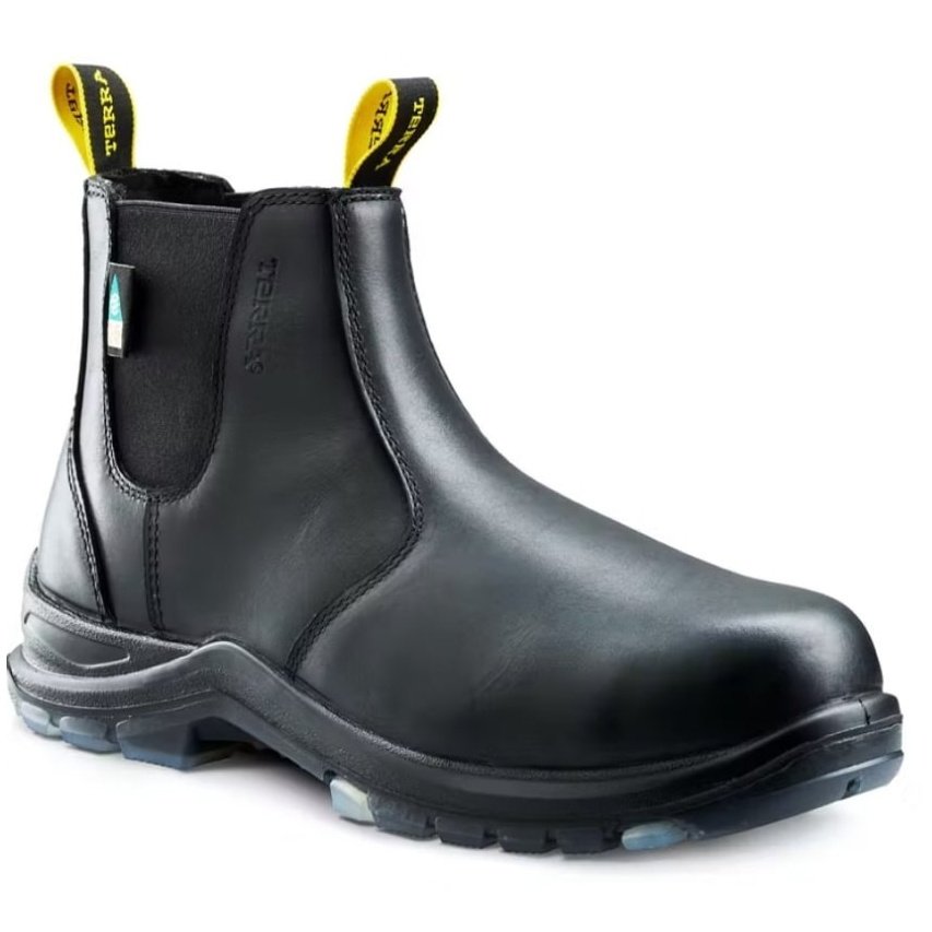 The Terra Murphy Men's 6" Composite Toe mid-cut 6-inch work boot features a full-grain waterproof leather upper with pull-on twin gore construction and Cleanfeet® odour fighting technology. Casual styling meets worksite-ready protection, with a composite toe and composite plate for safety, and water resistant construction to keep out the elements.