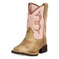 Ride in style little cowboy in these cute toddler girl’s Posy boots from Twister by M&F Western. These cute boots have a square toe with a side zipper for easy on and off. They have a TPR sole and are made with light pink upper and washed brown vamp. They have brown and pink stitching with light brown piping along the top and side. For comfort they have light pink fabric and mesh inside.