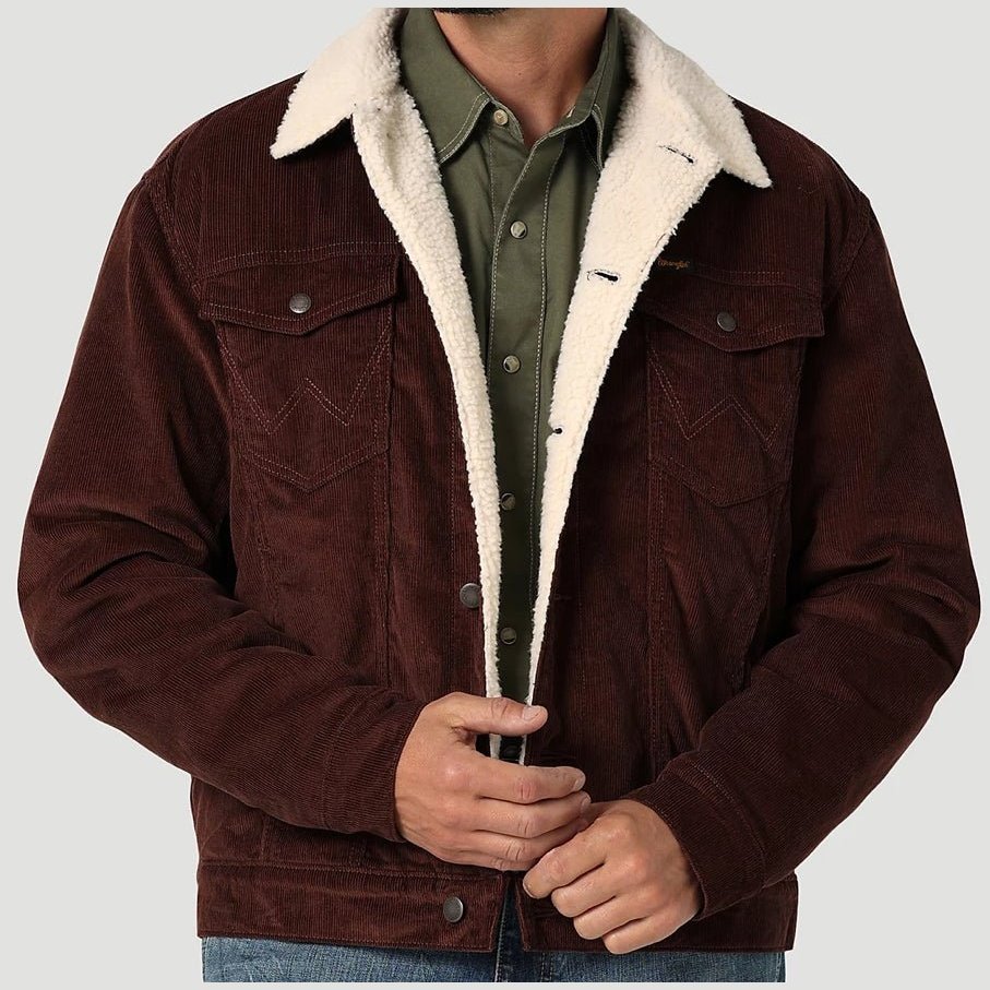 When it comes to rounding out your fall and winter wardrobe, there's nothing quite like a timeless style in a snug and comfortable fabric. This Cowboy Cut jacket features a sherpa-lined body and sherpa-lined sleeves for an unbeatable combination of comfort and style that provides the perfect solution for crisp days and chilly nights. It comes with the Western styling that's signature to Wrangler jackets: spade chest pockets with 'W' stitching, front chest pockets with snaps to keep your essentials secure, and a straight yoke. Best of all, this corduroy jacket is made of 100% cotton for a thick, soft texture that will keep you cozy all season long.