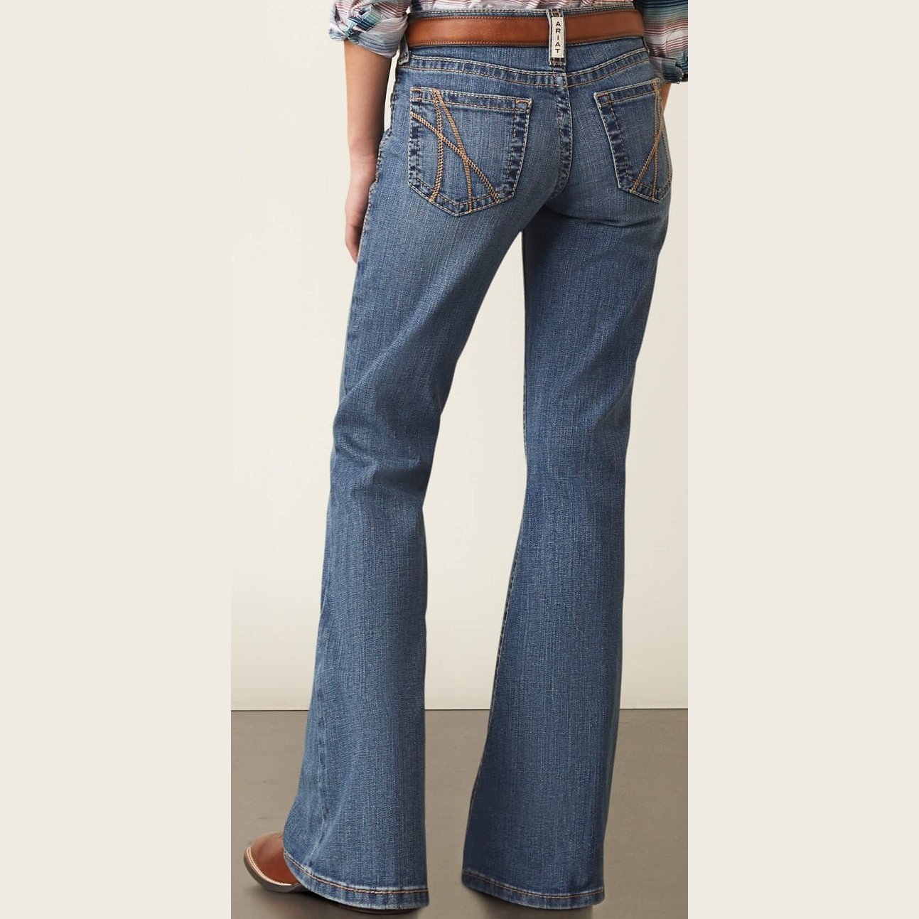 The stretch and durability you need in the saddle, in a versatile flare silhouette you can dress up for a night out. Plus, the subtle "A" stitched on the back pocket lets you show off your love of Ariat® wherever you go.