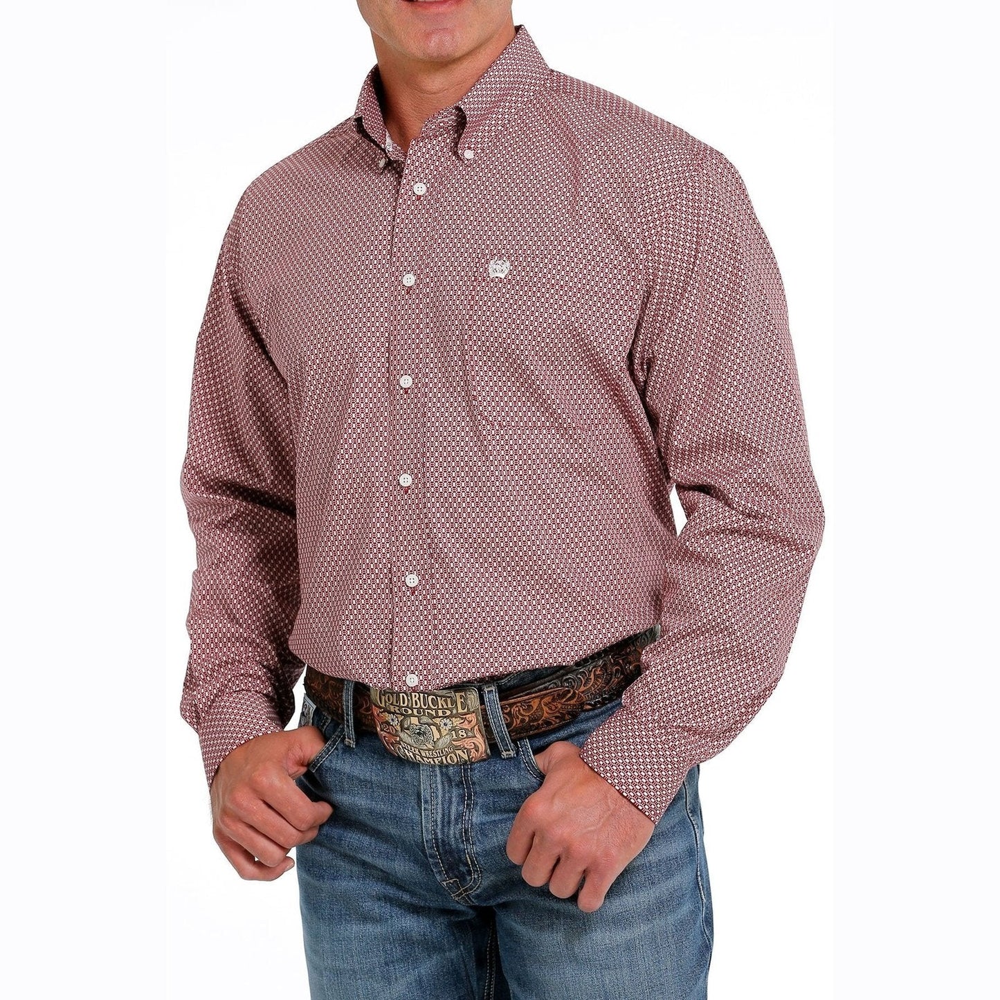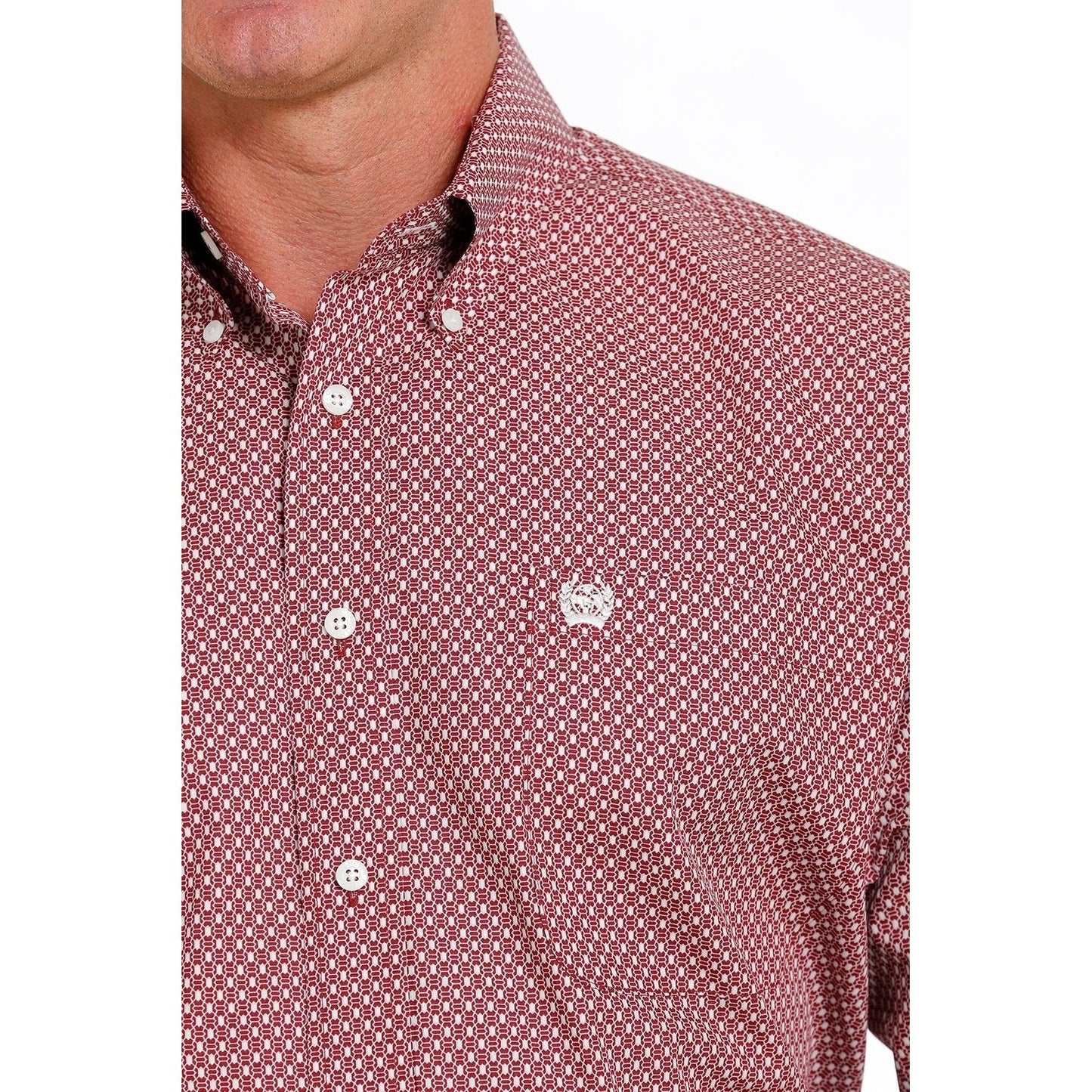 Cinch Men’s Western Shirt Geometric Print Button Down Red/Cream
