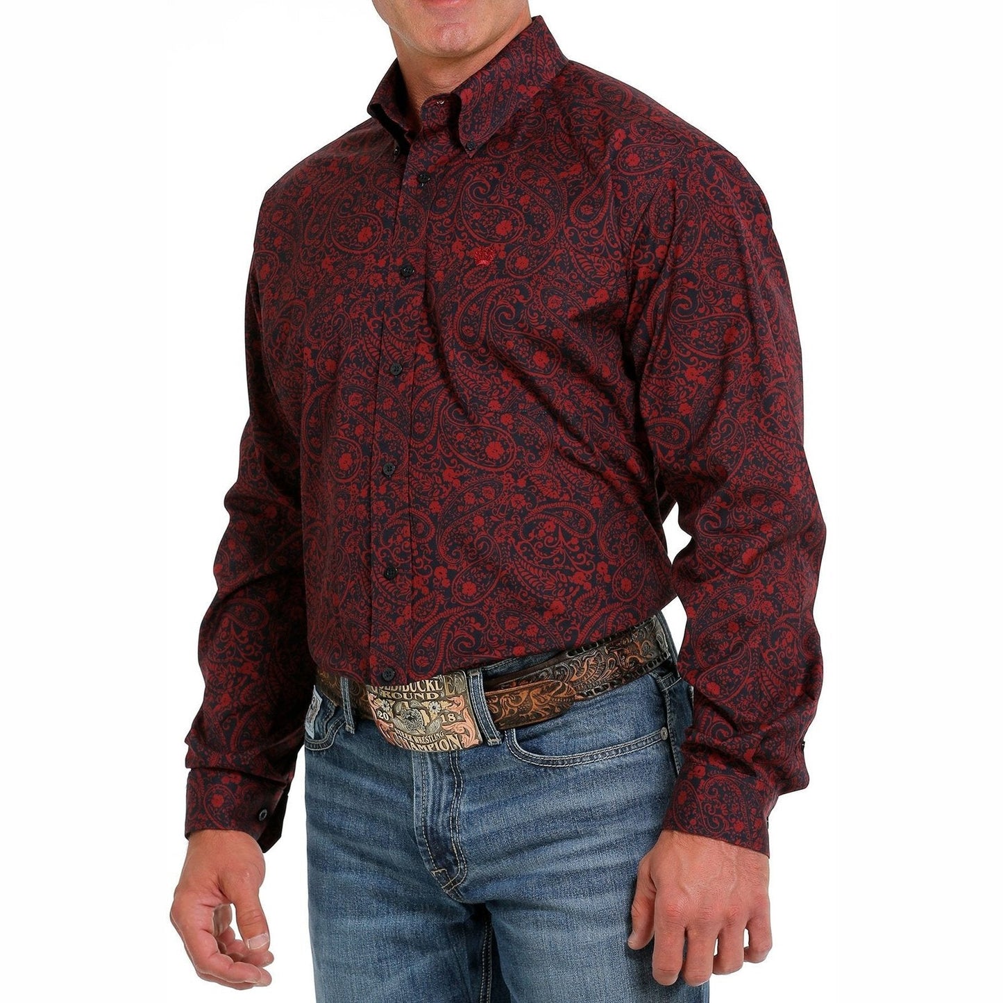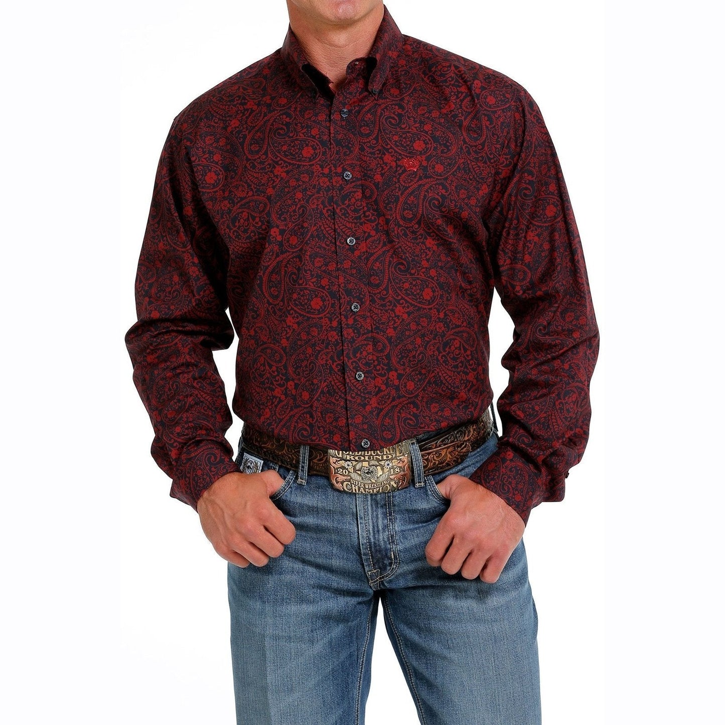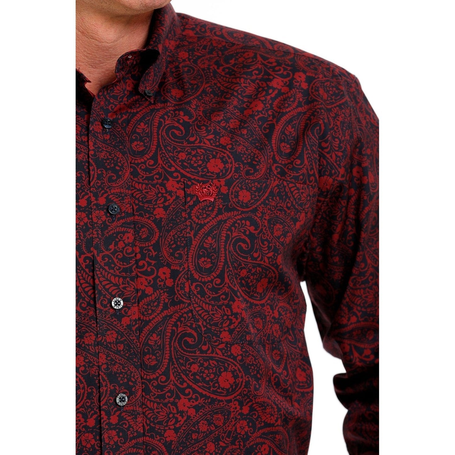 Cinch Men’s Western Shirt Red Paisley Button Down Navy/Red
