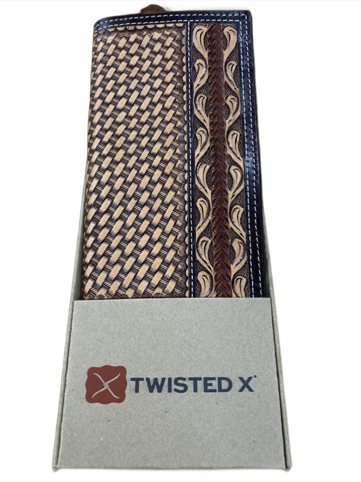 Western Fashion Accessories Basket Waved Leather Wallet With Tooled Accent