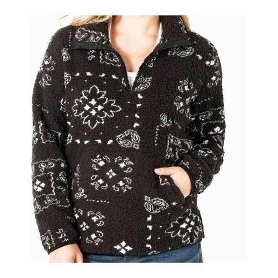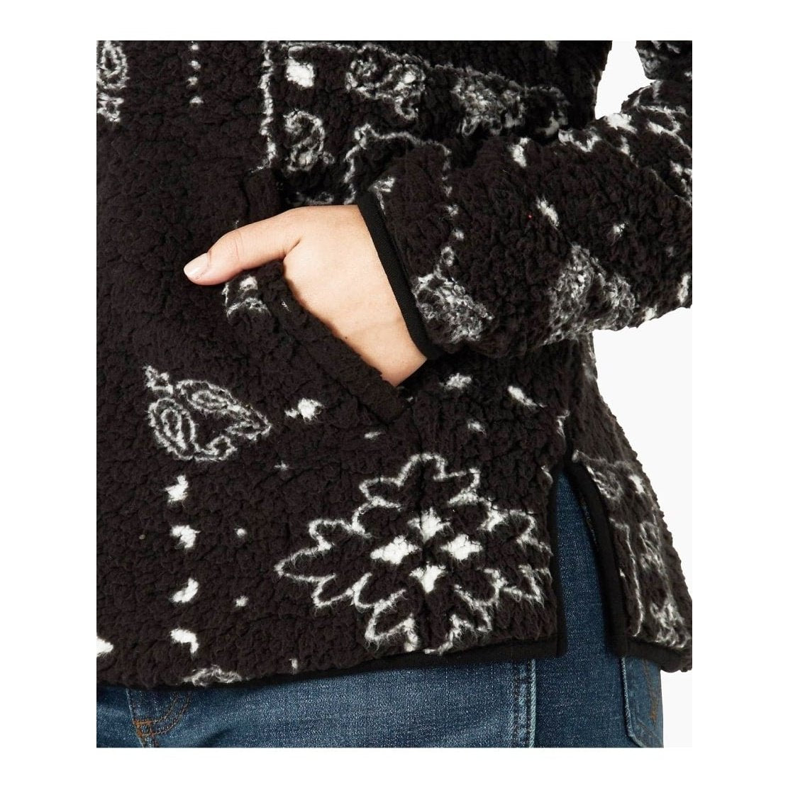Full of southwestern spirit and cozy vibes, this Wrangler women's quarter-zip pullover is a versatile staple you'll be reaching for all season long. Its sherpa fabric offers plenty of warmth for an easy layering piece. The classic southwestern print adds a striking look and authentic style perfect for pairing with Wrangler jeans.