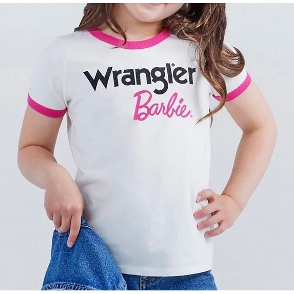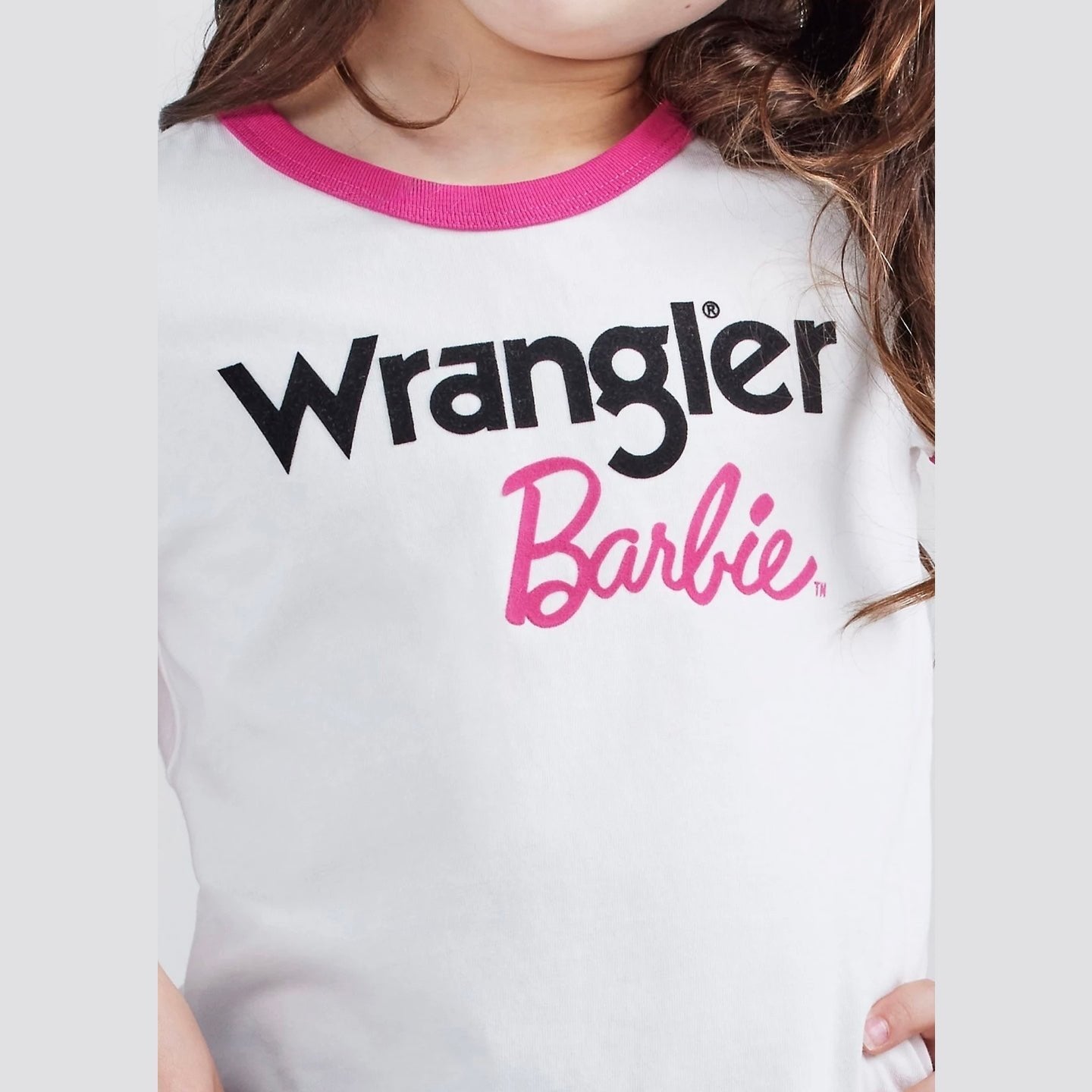 Wrangler Barbie Girl’s Logo Ringer Tee In White/Pink