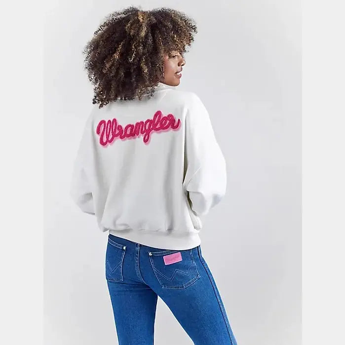 Wrangler Barbie Women's Relaxed Logo Sweatshirt In Worn White