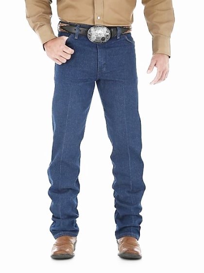 The classic blue jean. Boot cut, room through the thigh and seat. Pre-Washed. For more than 70 years, Wrangler's 13MWZ Cowboy Cut® jeans have been a tried-and-true wardrobe staple for cowboys across the country. Today, 13MWZ is the official ProRodeo competition jean. That's why Wei's offers Wranglers at an everyday low price.