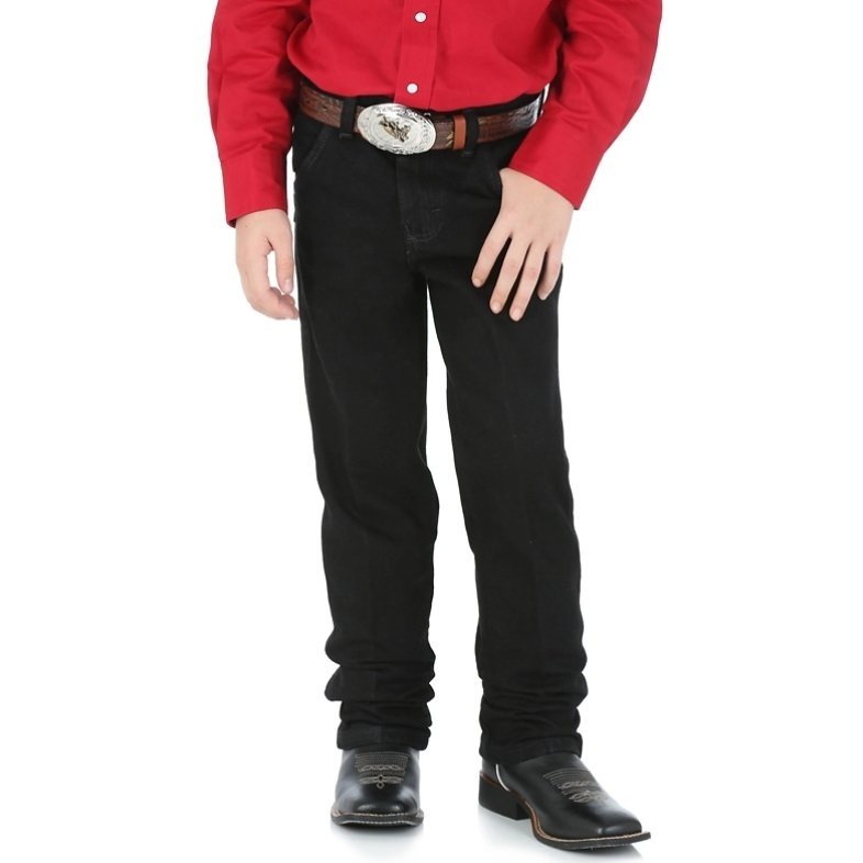 Wrangler's pre-washed Black jeans are the perfect choice for Cowboys in Training. These jeans have all the classic Western details that he'll come to know as he grows. 2 fits are available: Regular and Slim, and the pants feature an adjust-to-fit waistband.