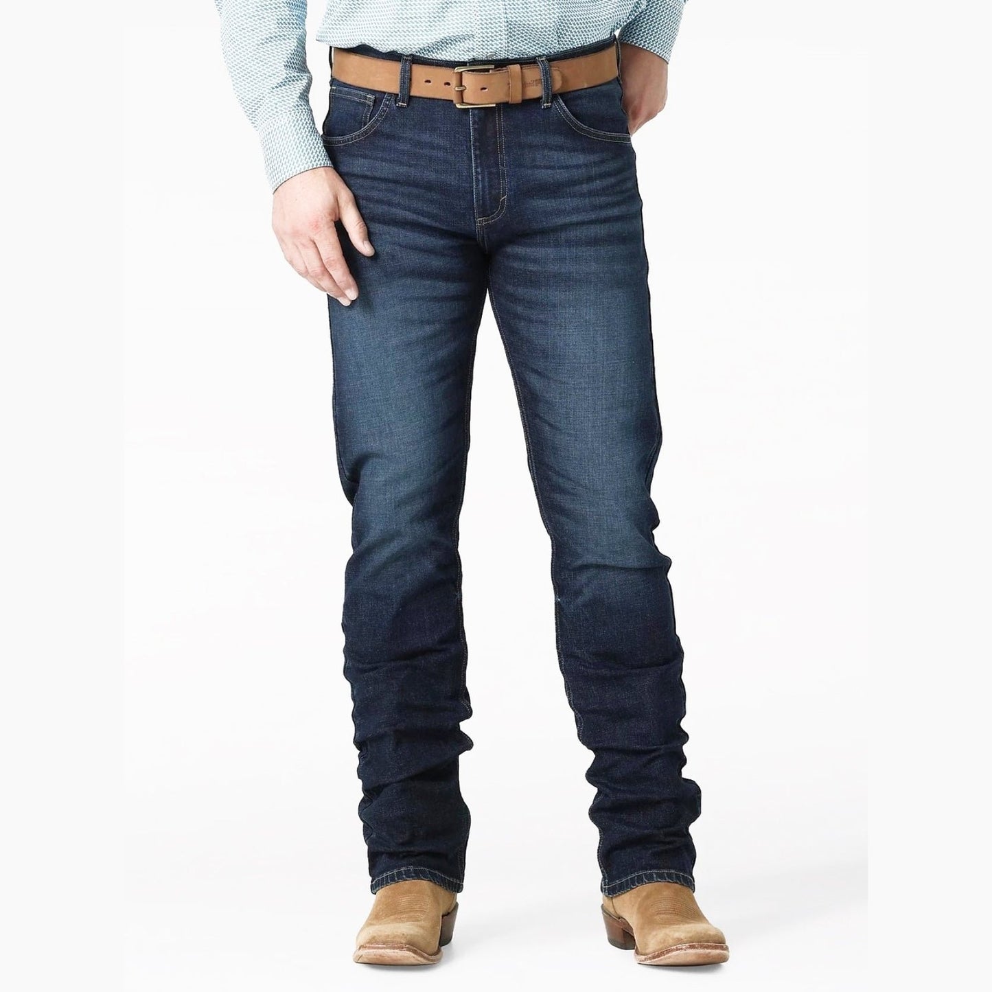 When you want to look good but be ready for anything the day brings, Wrangler® 20X® slim fit jeans have your back. These Western-inspired jeans sit just below the waist and they come with a slim seat and thigh as well as a straight leg that fits over boots. Plus, our men's 20X® No. 44 slim fit straight leg jeans feature all the authentic Wrangler® details you know and added stretch to keep you moving in total comfort.