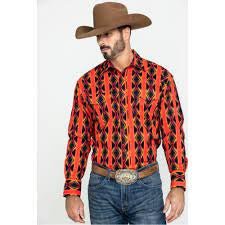 Wrangler's dynamic Navajo design sets this tailored shirt apart. It features details such as Western-style yokes, snap closures and flap pockets.