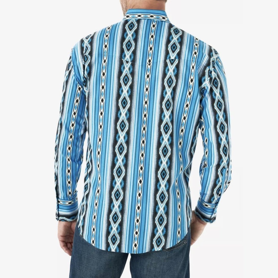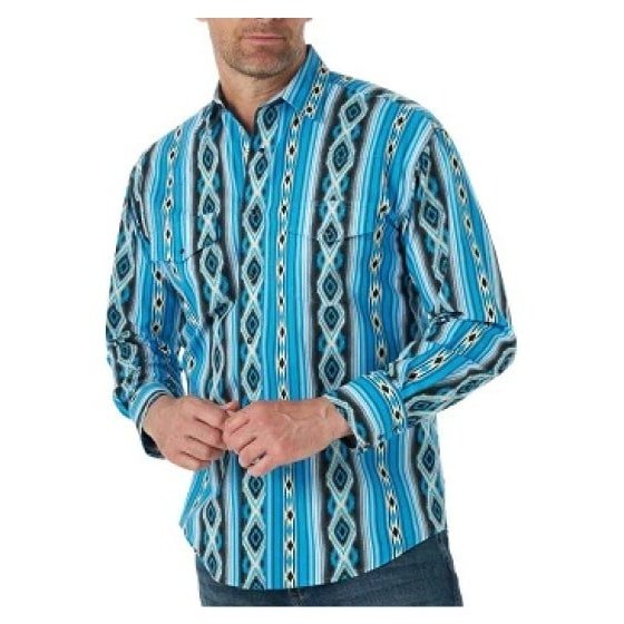 Wrangler's dynamic Western design sets this tailored shirt apart. It features details such as Western-style yokes, snap closures and flap pockets.