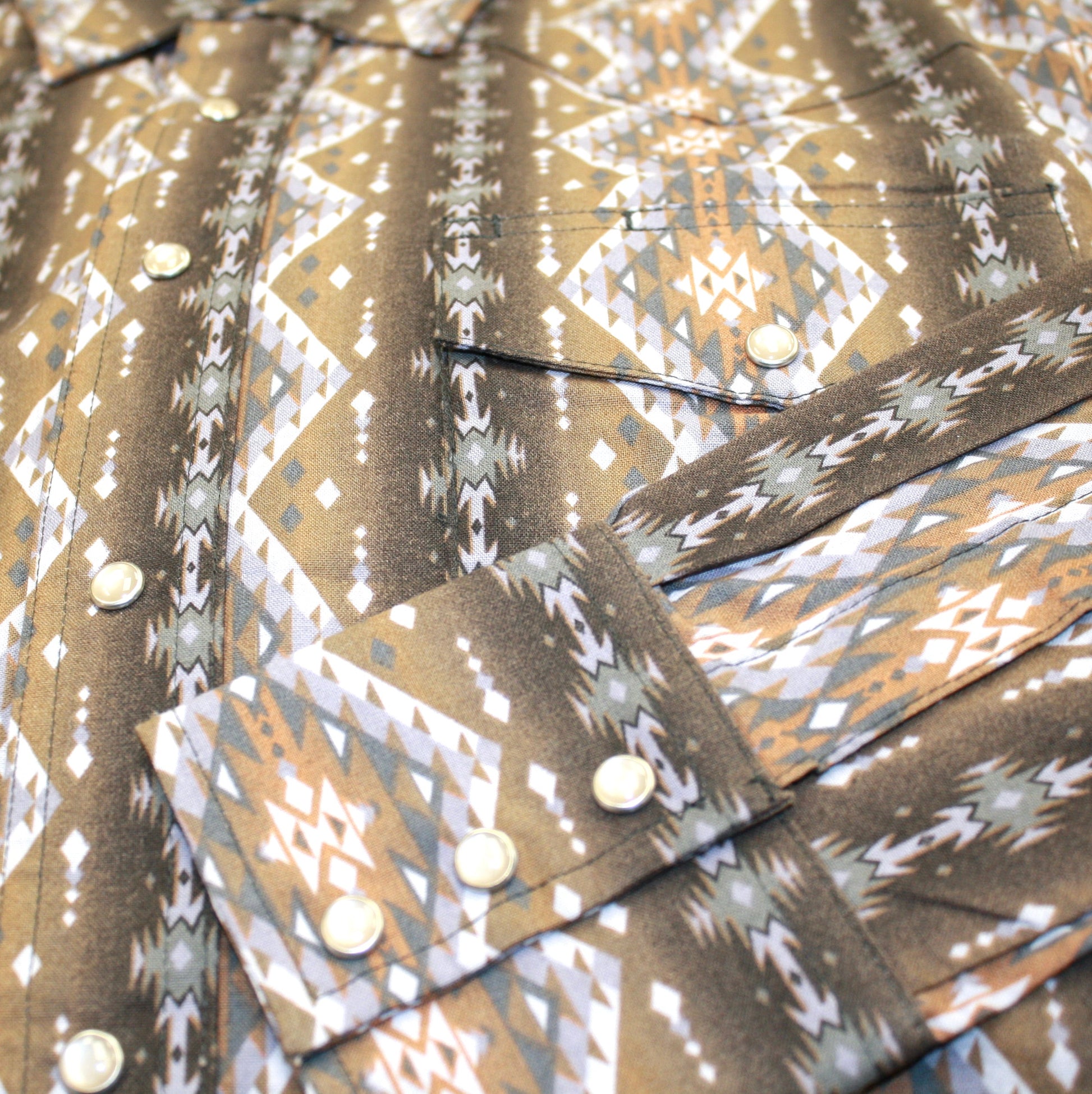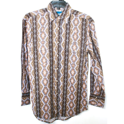 Wrangler's desert-print motif keeps the frontier spirit alive on this tailored shirt for Men. It features details such as Western-style yokes, snap closures and flap pockets.