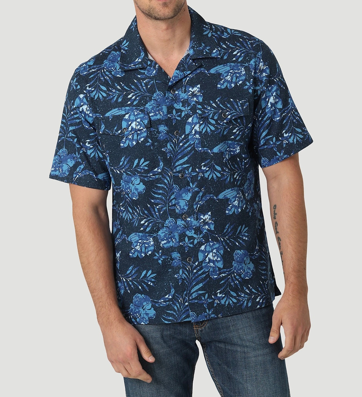 Wrangler Men’s Short Sleeve Shirt Coconut Lush Blue