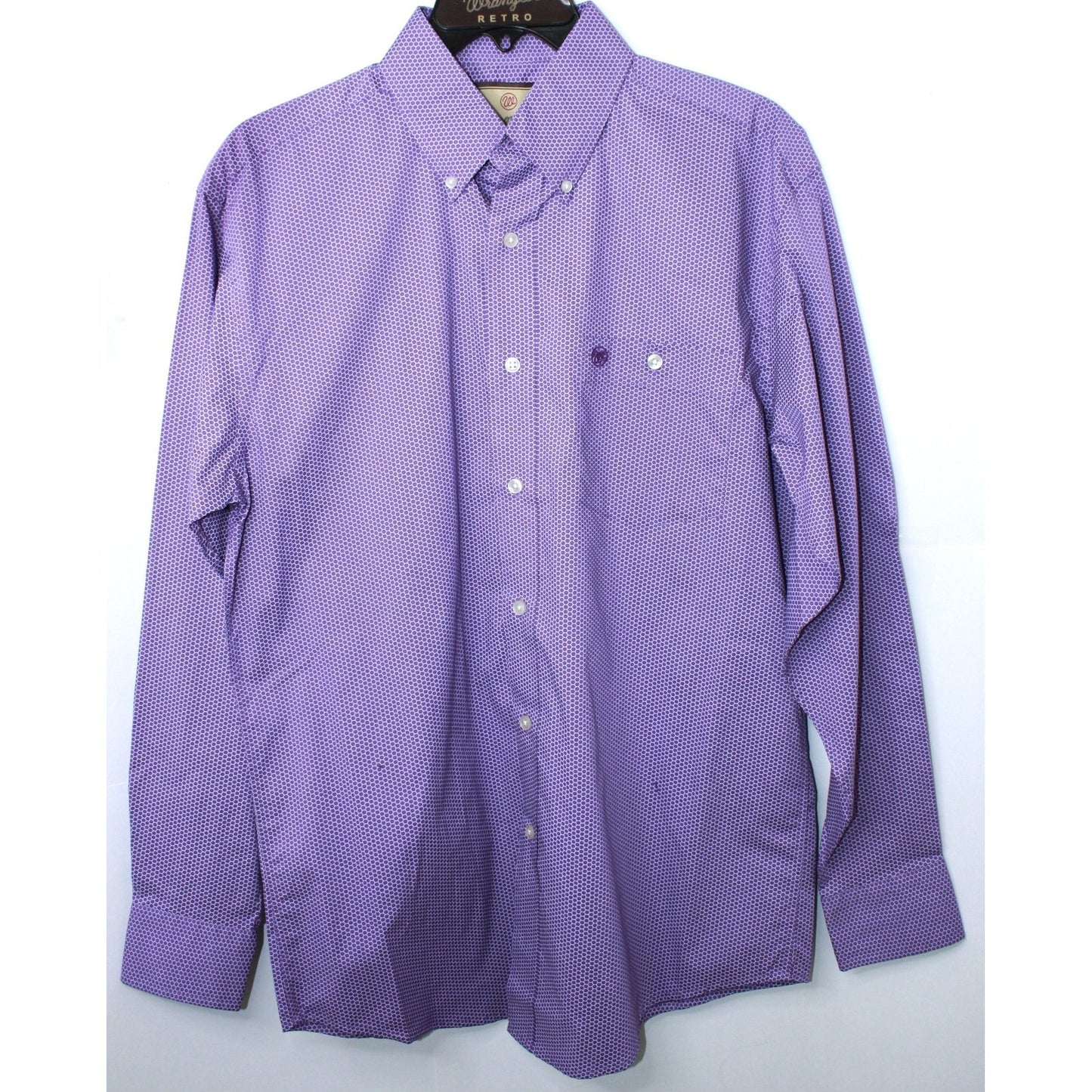 This is a classic men's Wrangler Retro® Premium styled shirt you know and love. This long-sleeve shirt is designed for Western authenticity and features a spread collar, Western front and back yokes, 'W' stitching on the snap flap chest pockets, and stylish contrast trim on the inner cuffs. Plus, it's made from 100% cotton for comfort you can count on all day long.
