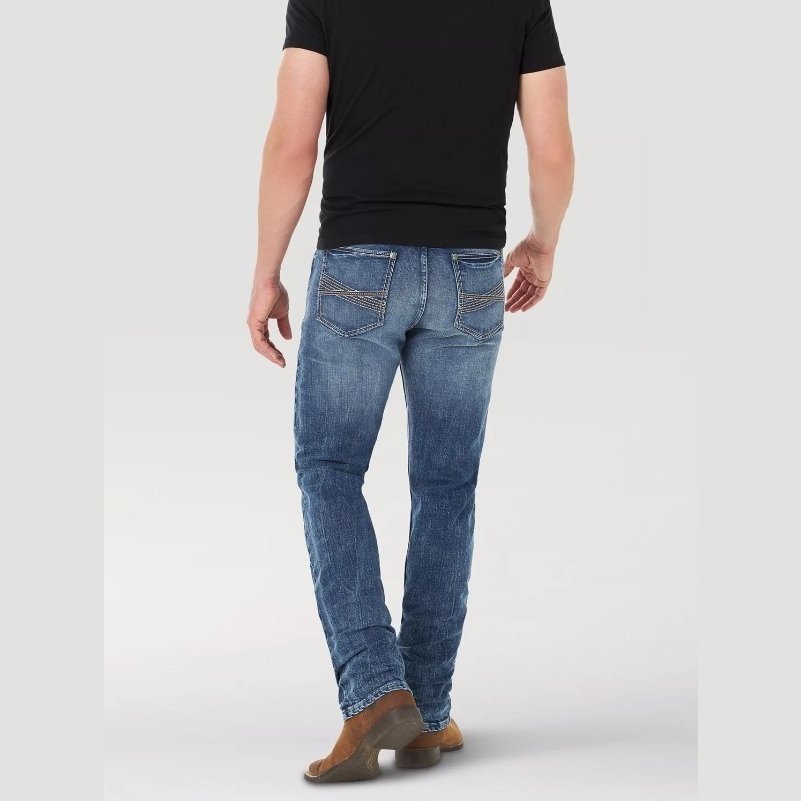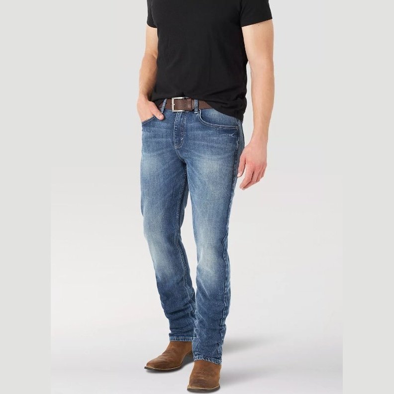 These Western-inspired jeans sit just below the waist and they come with a slim seat and thigh as well as a straight leg that fits over boots. Plus, our men's 20X® No. 44 slim fit straight leg jeans feature all the authentic Wrangler® details you know, and added stretch to keep you moving in total comfort.