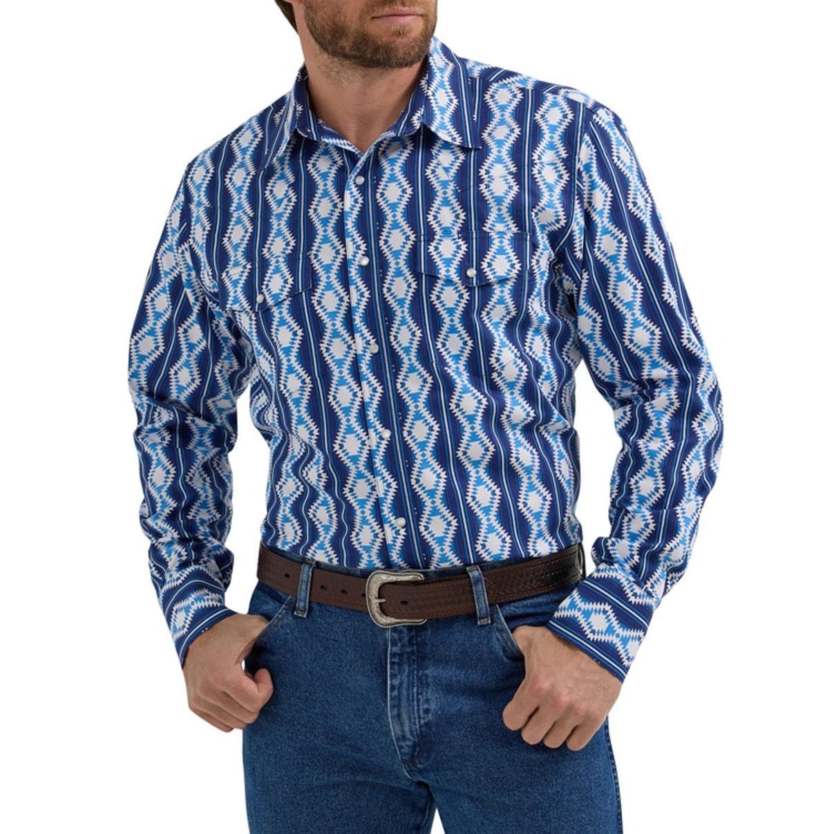 Wrangler Men's Blue Checotah Snap Long Sleeve Shirt