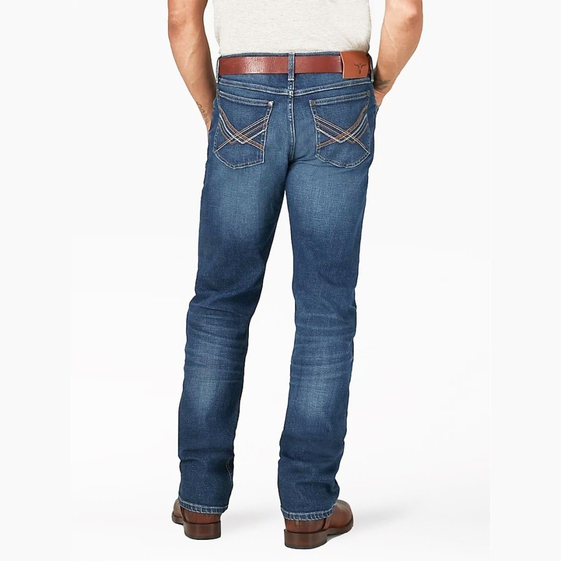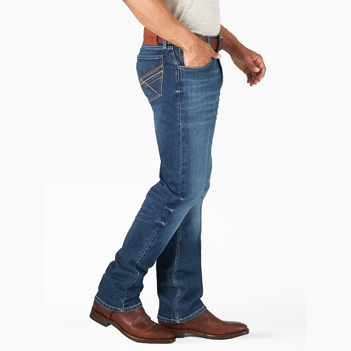 These Western-inspired Wranglers sit just below the waist and come with a slim seat and thigh as well as a straight leg that fits over boots. Plus, our men's 20X® No. 44 slim fit straight leg jeans feature all the authentic Wrangler® details you know and added stretch to keep you moving in total comfort. Every wash of our men's 20X® straight leg slim fit jeans features an exclusive back pocket design.