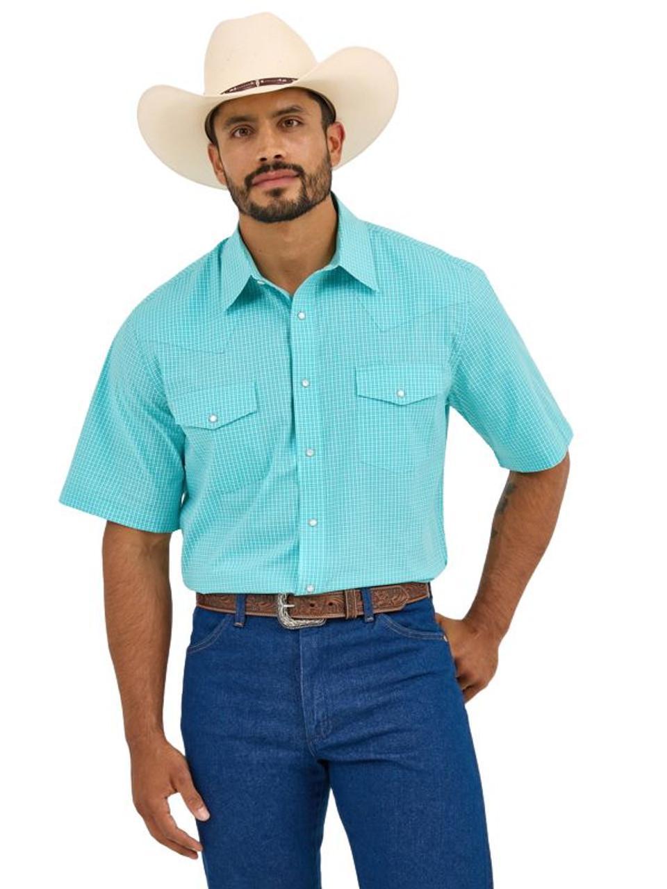 Wrangler Mens Turquoise Classic Wrinkle Resist Short Sleeve Shirt
