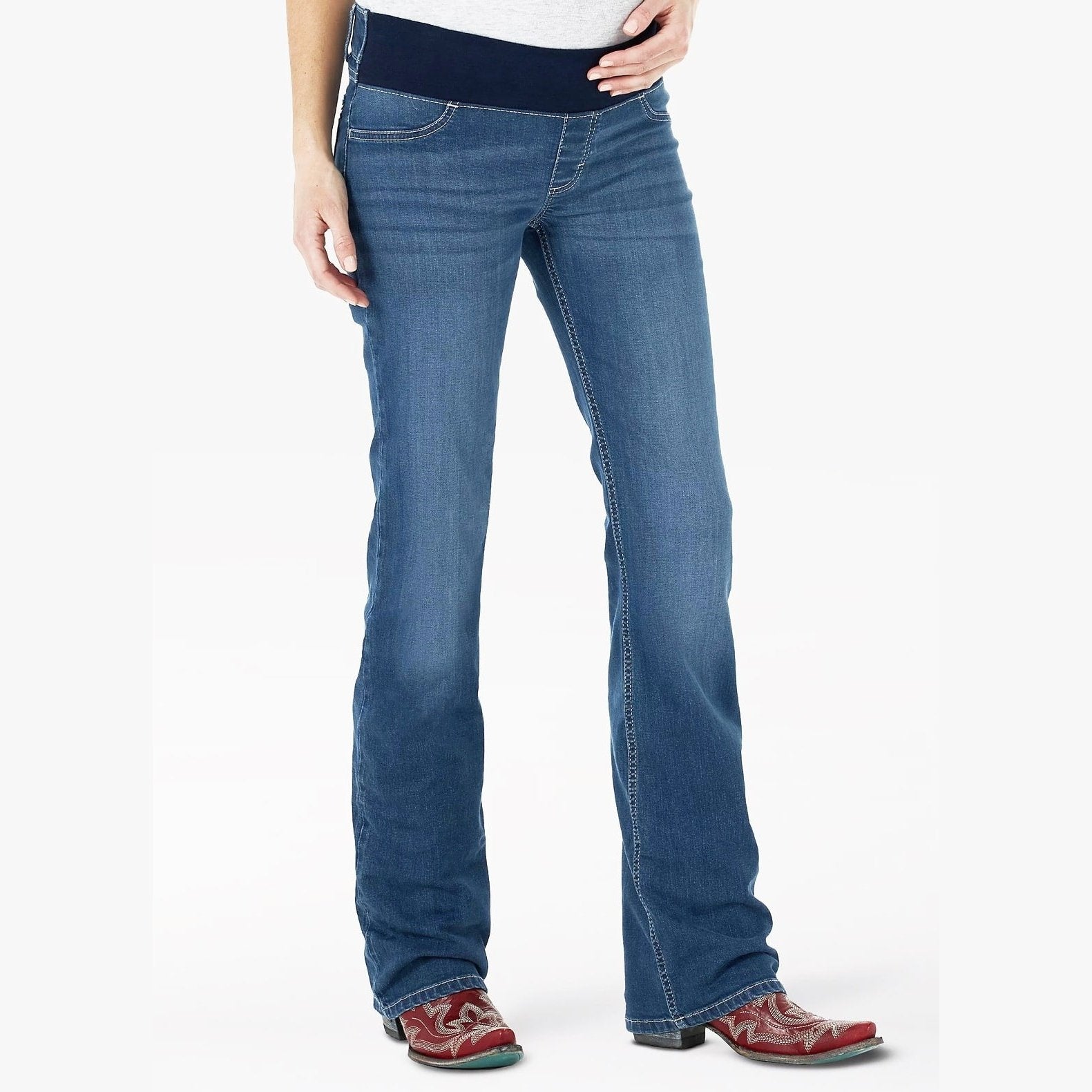 Your favourite bootcut is back, but now Wrangler can carry you from one trimester to the next. From its contoured waist to its secret elastic belly band, the women's Wrangler Retro® Mae maternity bootcut jean is specially designed to flatter your curves while holding you in and keeping you comfortable. Plus, this classic bootcut pairs perfectly with bump-friendly tops.