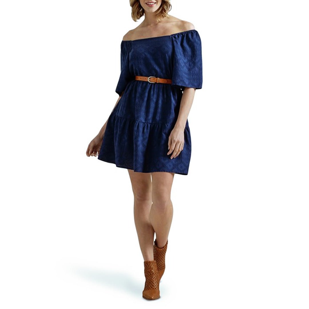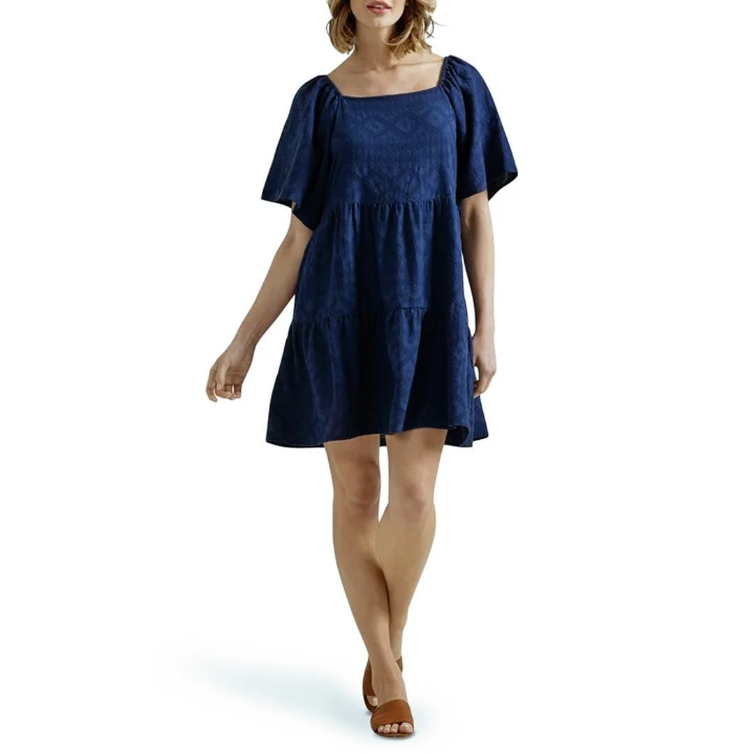 Wrangler Women's Navy Square Neck Tiered Dress